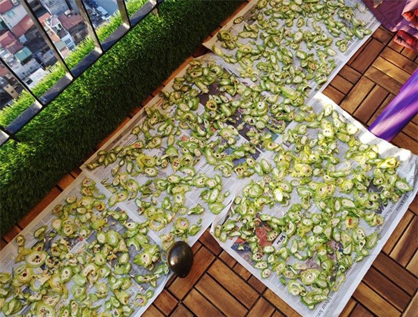 Nắng nóng, ban công chung cư cũng dễ dàng phơi rau củ cho khô.