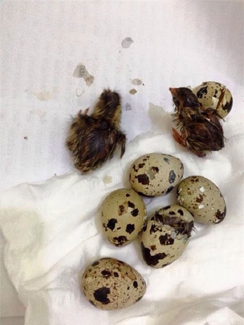 ra bật dậy thì thấy vài em chim cút nở. Để khoảng nửa tiếng