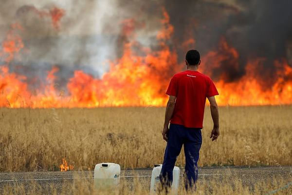 Ở Tây Ban Nha, đám cháy bùng phát dữ dội trên một cánh đồng, thiêu rụi máy xúc gần thị trấn Tabara ở phía Bắc, người lái xe phải bỏ chạy vì quần áo trên lưng anh ta bắt lửa và bị cháy. Một lính cứu hỏa 62 tuổi thiệt mạng sau khi mắc kẹt trong ngọn lửa, trong khi một người chăn cừu 69 tuổi cũng bị chết cháy.
