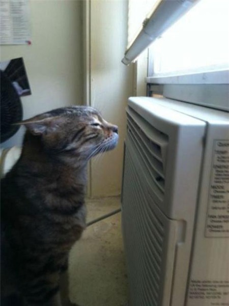 Mèo tranh thủ hứng gió từ máy điều hòa |