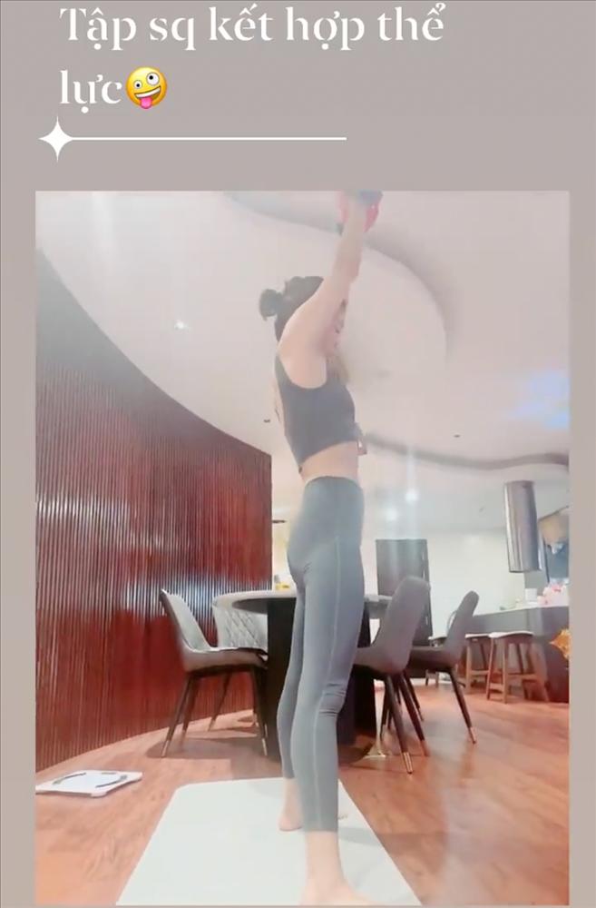 Lệ Quyên còn khoe bài tập squat kết hợp thể lực nữa nhưng không biết vì lý do gì mà body nhìn bỗng thẳng đuột, 3 vòng như 1, không còn chút quyến rũ nào nữa.
