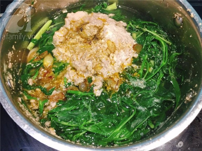 Cho phần khoai sọ vào nồi nước cua còn lại, đun chín nhừ.