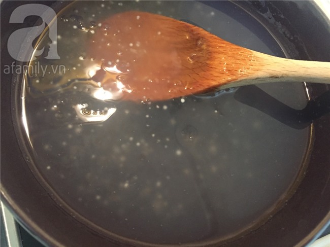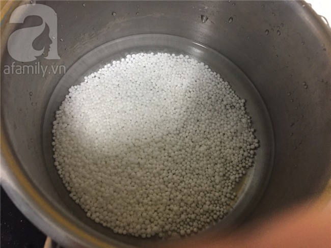 Khi bột báng trong đổ ra tô giữ nguyên phần nước cho bột báng không dính vào nhau.