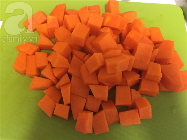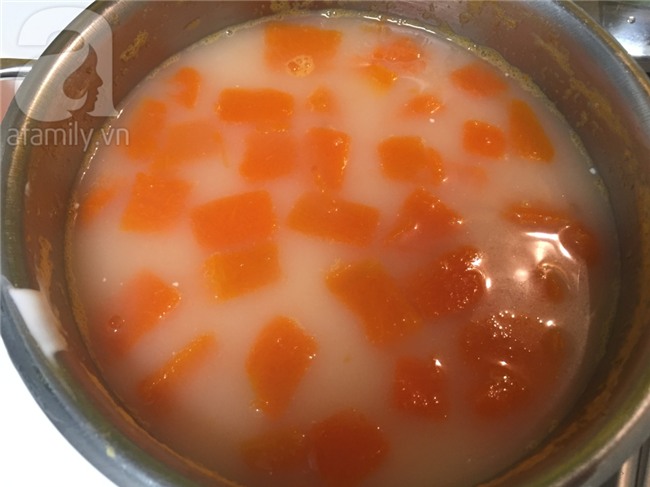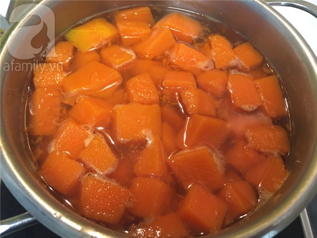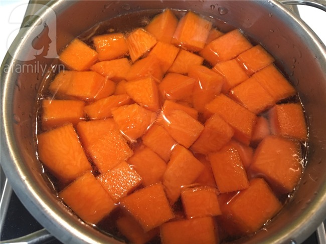 Cho bí đỏ vào nồi với 500ml nước, đun sôi.