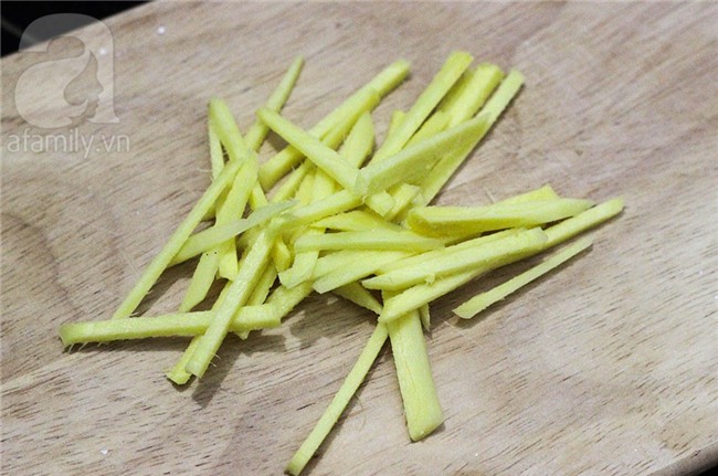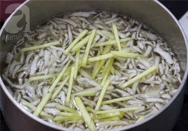 Cuối cùng thêm gừng thái sợi vào nồi khuấy đều là xong.