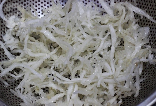 Sau 3 giờ, đổ rau câu ra rổ rửa thật sạch, để ráo nước.