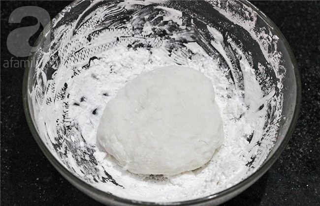 Trộn bột năng với nước đun sôi, tạo thành khối bột dẻo dai, sờ không dính tay.