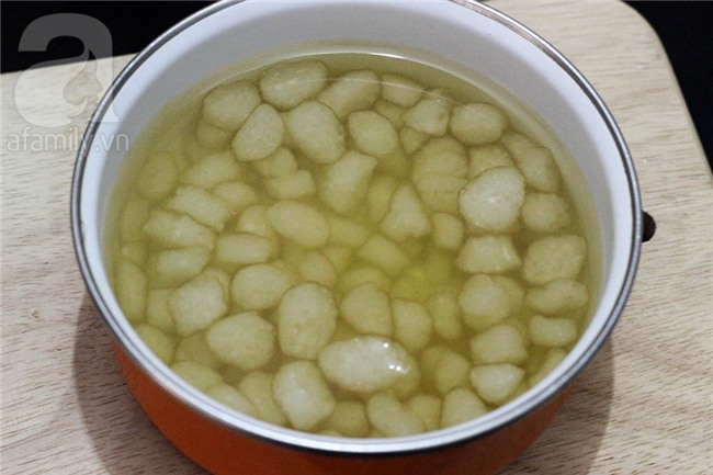 Vớt trân châu ra bát nước lọc để trân châu không bị dính.