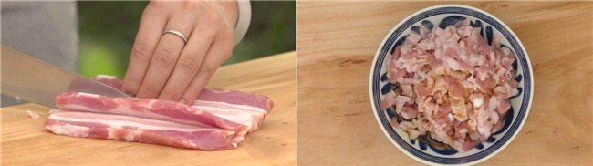 Thịt cắt thành lát dày sau đó cắt thành mảnh nhỏ. Cho thịt vào bát thêm 15ml nước tương, 15ml rượu, một ít đường vào trộn đều. Ướp thịt qua đêm trong tủ lạnh.