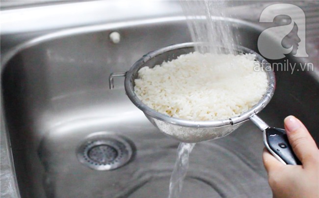 Nếp ngâm trước ít nhất 8 giờ sau đó đổ ra giá xả dưới vòi nước lạnh. Sau đó để ráo.