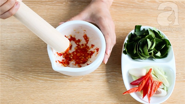 Cắt khúc lá chanh, sả cây, ớt sừng.