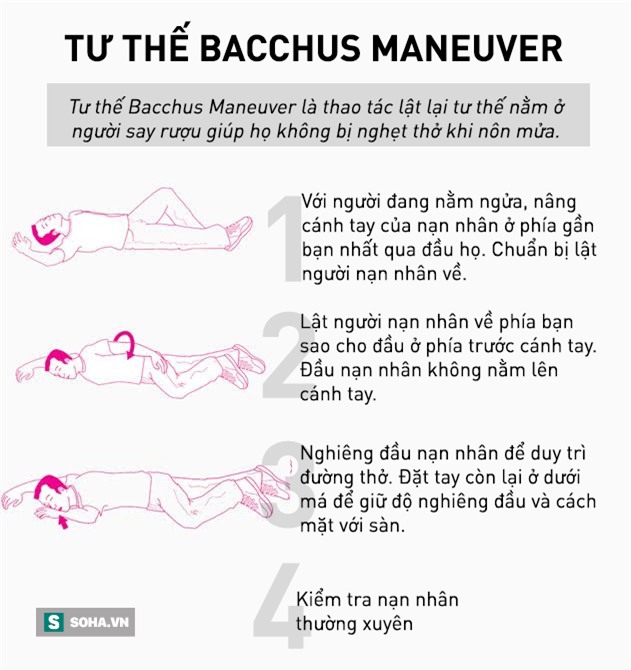 - Thực hiện tư thế Bacchus Maneuver – tư thế giúp họ không bị nghẹt thở khi nôn mửa.