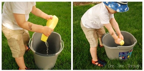 chiếc kia không chứa nước. Sau đó bạn đưa cho bé một miếng bọt biển. Bạn