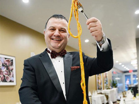 Cho mì ra đĩa, thêm xốt lên trên rắc thêm phô mai bào mịn. Thưởng thức khi còn nóng rất ngon.