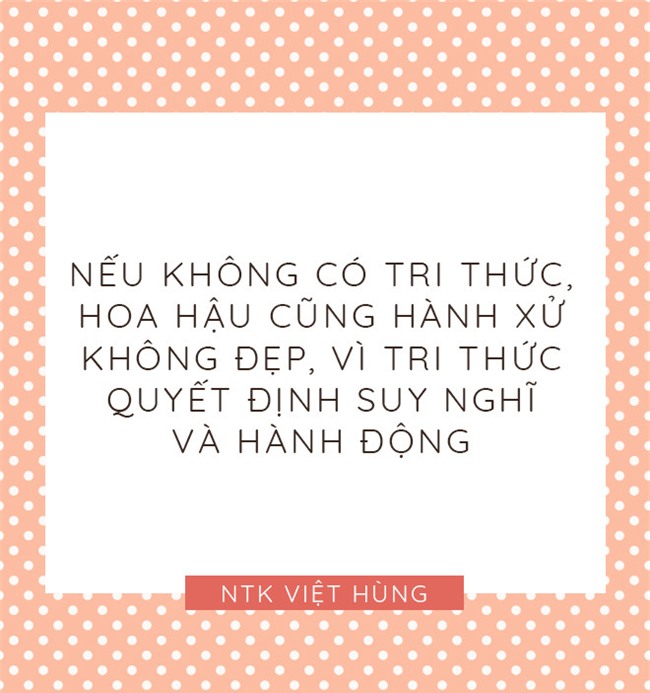 Mở đầu cuộc trò chuyện, Việt Hùng nói những năm gần đây, anh cũng rời xa hoạt động đào tạo hoa hậu vì thất vọng khi các hoa hậu không có khát khao cống hiến như anh mong muốn mà phần lớn chạy theo tư lợi.