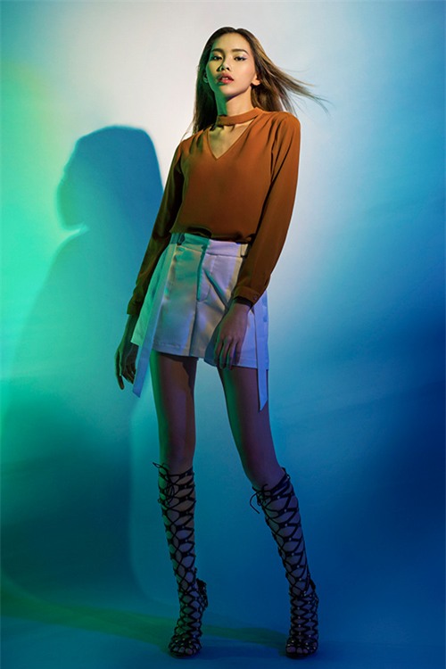 Trong bộ ảnh mới, Top 13 thí sinh của Vietnam’s Next Top Model 2016 thể hiện các trang phục ứng dụng qua hiệu ứng ánh sáng ảo diệu. Không những thế, cặp chân của các người mẫu tương lai cũng được "kéo dài" miên man.