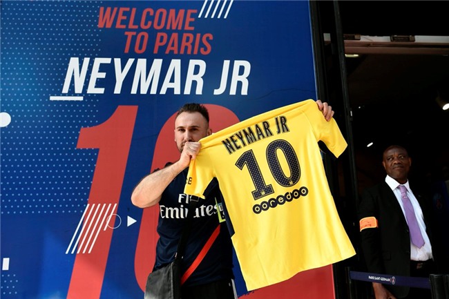 | Áo đấu của Neymar đã lên kệ, sẵn sàng đến tay CĐV. Trong ngày hôm nay, chỉ có một lượng nhỏ CĐV may mắn sở hữu những chiếc áo đầu tiên có in tên và số của Neymar. |