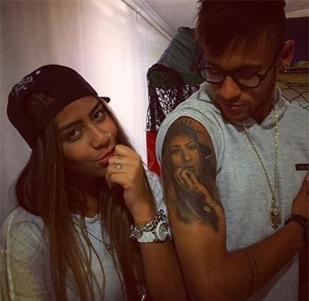 Tình cảm của Neymar và em gái Rafaella Santos từ trước đến nay đều hết sức thắm thiết. Chàng tiền đạo người Brazil thậm chí còn xăm hình chân dung cô em gái cá tính lên bắp tay phải.
