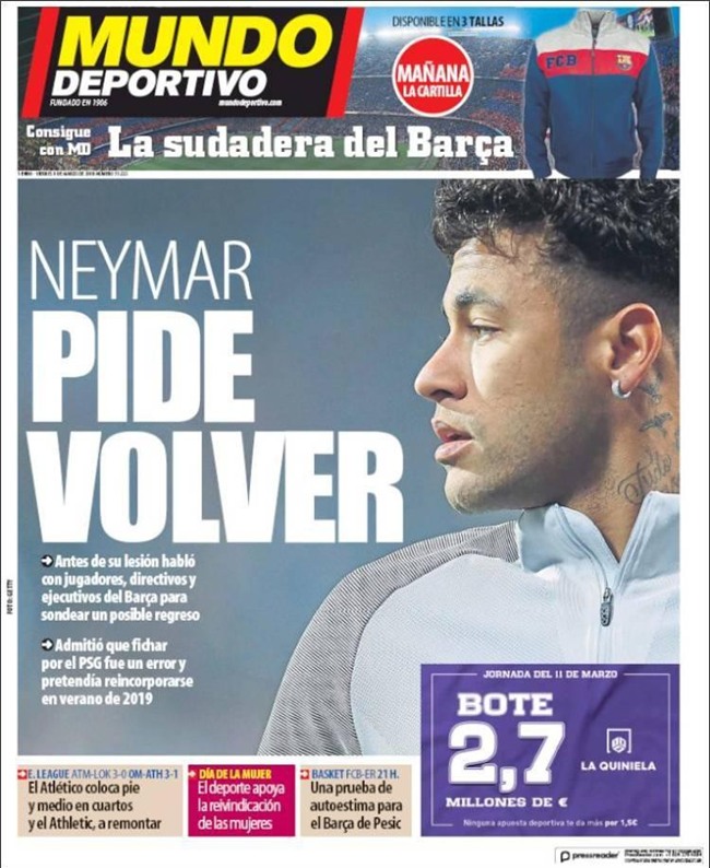 Mundo Deportivo cho hay, Neymar đã sai khi nghĩ rằng mình bị Messi cản trở. Bên cạnh đó, tuyển thủ Brazil cũng "mù quáng" trước sức mạnh đồng tiền của PSG. Trên thực tế, Ligue 1, giải đấu hạng cao nhất nước Pháp không giàu tính cạnh tranh như anh kỳ vọng.