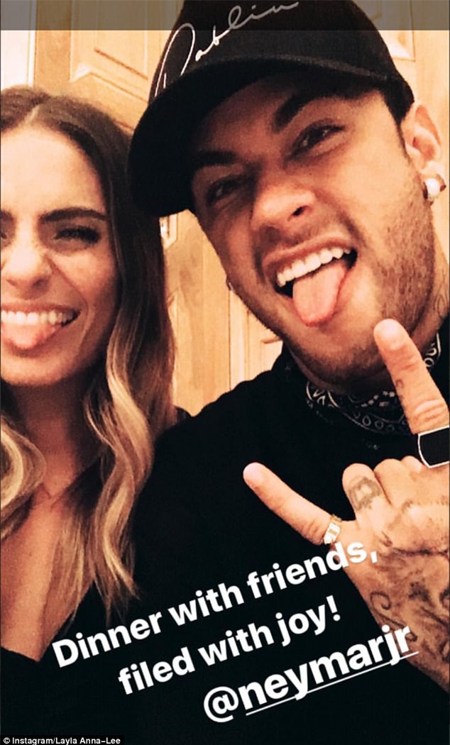 Layla Anna-Lee là MC khá nổi tiếng ở Anh, người gần đây gây chú ý với chiếc đầm khoe lưng trần trong Gala trao giải The Best 2017 của FIFA. Tối 14/11, người đẹp 34 tuổi có dịp tiệc tùng cùng với ngôi sao đắt giá nhất thế giới Neymar.