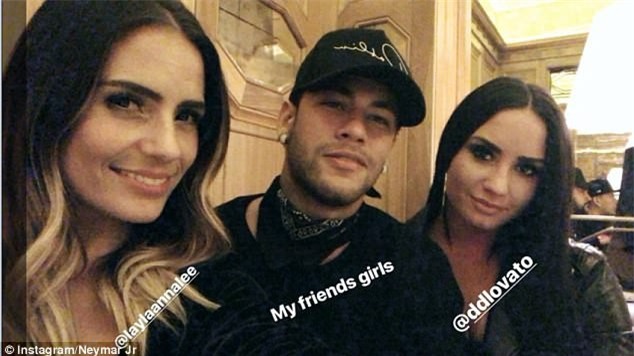 Chính Neymar là người đăng tấm ảnh khoe đang vui vẻ cùng Anna-Lee trên trang cá nhân. Ngoài cô MC nổi tiếng, Neymar còn đứng cạnh nữ ca sĩ người Mỹ Demi Lovato.