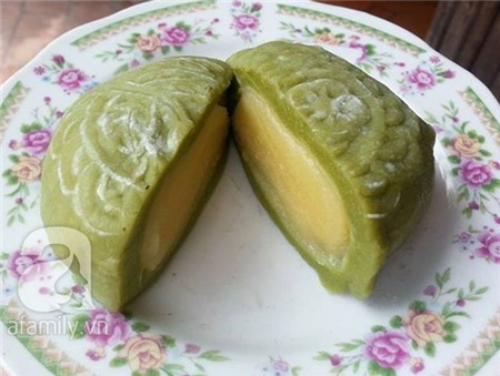 để làm vỏ bánh. Nhân thì có trứng muối, đậu xanh, sen nhuyễn, trà xanh,
