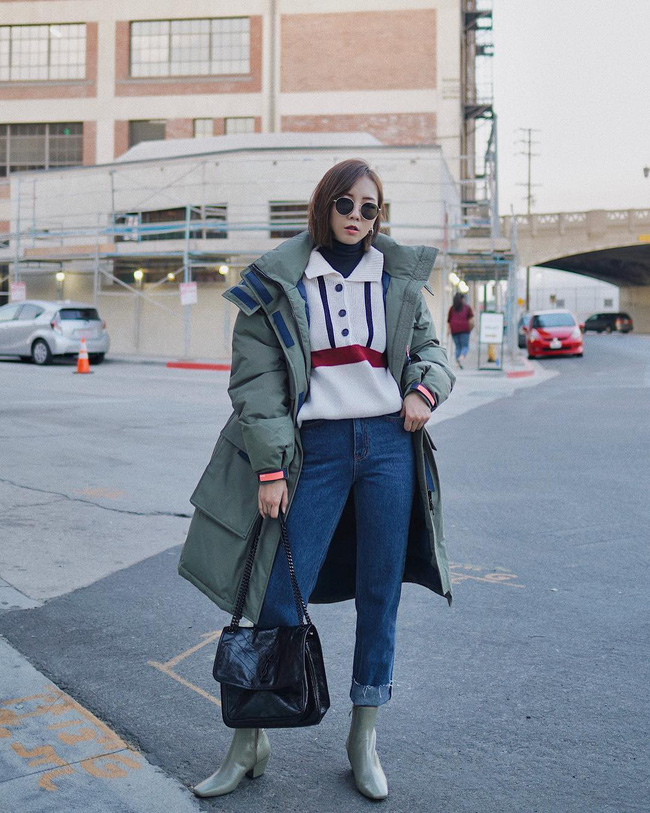 Xắn gấu quần jeans cũng là một ý tưởng không tồi giúp tăng thêm độ chất và trẻ trung cho cả set đồ của các nàng. Cũng đừng quên sơ vin bộ đôi áo – quần bên trong để "ăn gian" chiều cao như quý cô này nhé!
