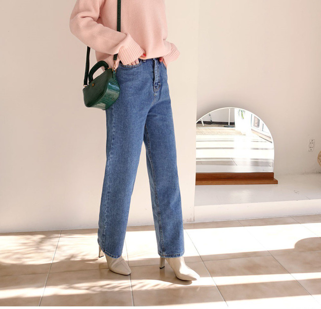 Khi trong tủ đồ đã có sẵn một chiếc áo len hồng pastel ngọt ngào, điều các nàng cần chính là một chiếc quần jeans ống rộng cùng đôi boots màu trắng kem nền nã, "hợp rơ" tuyệt đối với nét trẻ trung, tươi sáng của cả set đồ.