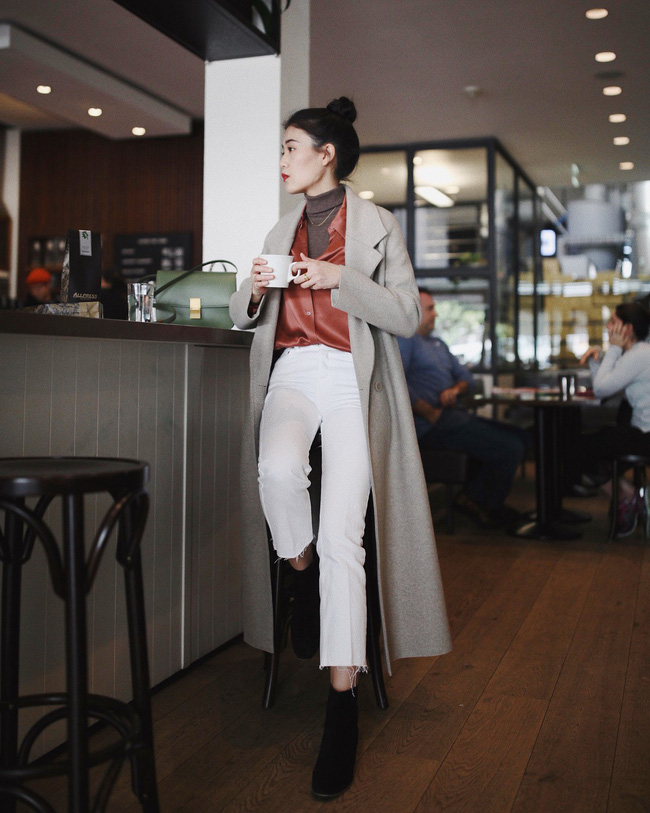 Đừng quên là ngoài quần jeans xanh thì sự kết hợp giữa jeans trắng với boots thấp cổ tuyền màu đen cũng ăn ý lắm. Và set đồ với áo cổ lọ + áo sơ mi, mix cùng jeans trắng, áo dạ dáng dài rồi hoàn thiện bằng đôi boots này cũng thật hoàn hảo để dành cho các nàng công sở thanh lịch.