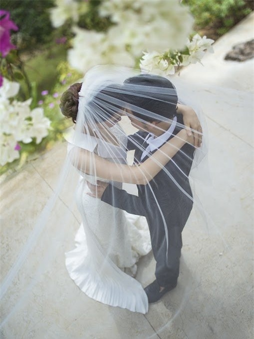 Cô dâu Trang Nhung e ấp trong vòng tay của chú rể Hoàng Duy