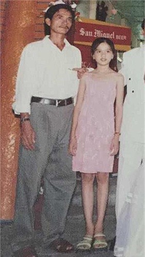Chụp ảnh cùng bố, Ngọc Trinh đã bắt đầu hứa hẹn trở thành một "chân dài"