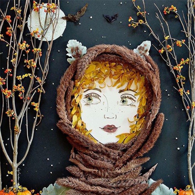 và lá khô, biến chúng thành tác phẩm nghệ thuật đầy màu sắc.
