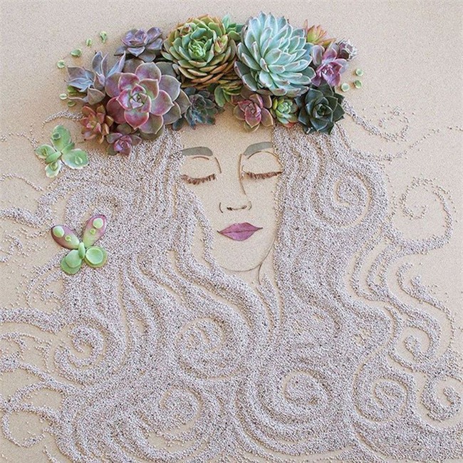 Thậm chí, những chất liệu phông nền đặc biệt như nền cát trắng, cũng không hạn chế được khả năng sáng tạo của người họa sĩ.