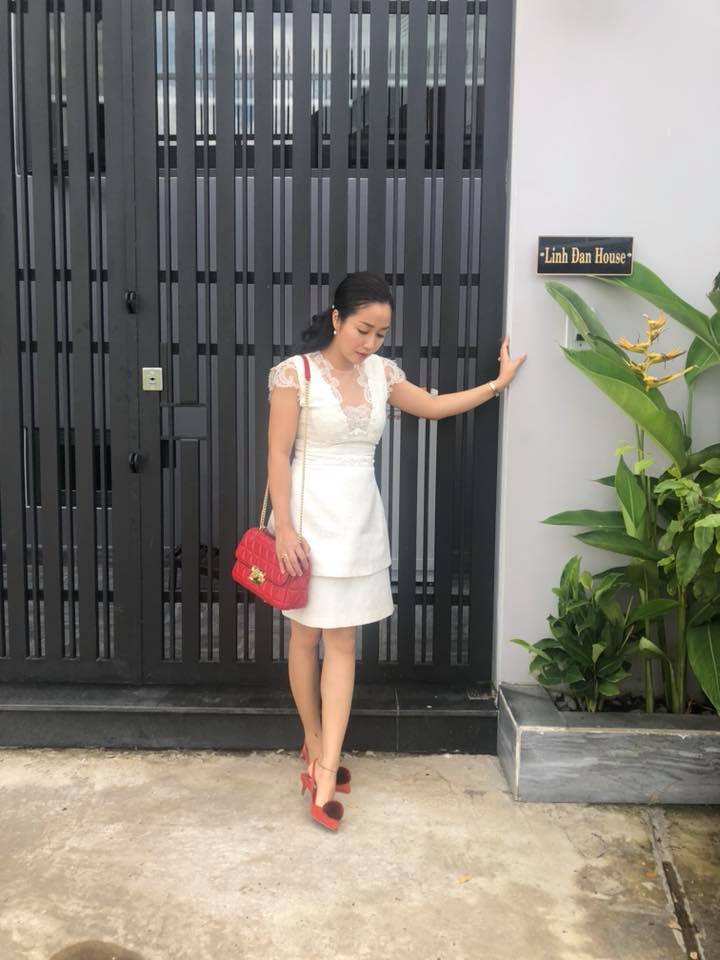 Ốc Thanh Vân tạo dáng bên ngôi nhà xinh đẹp của gia đình mình.