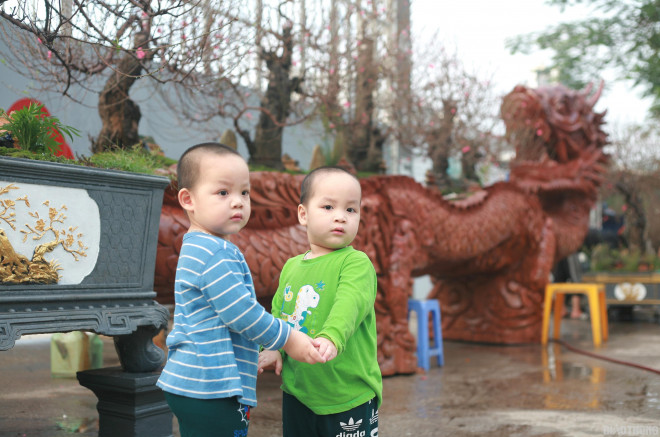 Nhiều em nhỏ tỏ ra thích thú và tạo dáng chụp hình bên tác phẩm độc đáo này.