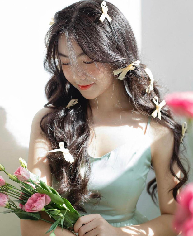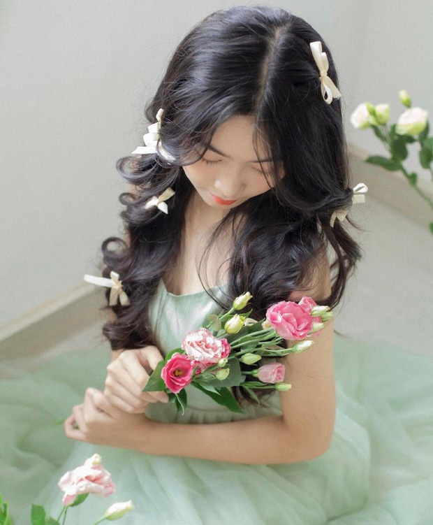 Trong những hình ảnh này, cô bạn mặc một chiếc váy trơn màu xanh mint với lối trang điểm nhẹ nhàng nên càng làm tôn lên nhan sắc xịn xò. Giữa những bông hoa cát tường, Lọ Lem hóa thân thành nàng thơ đúng chuẩn "thì ra, mùa xuân hoa nở là vì em!".
