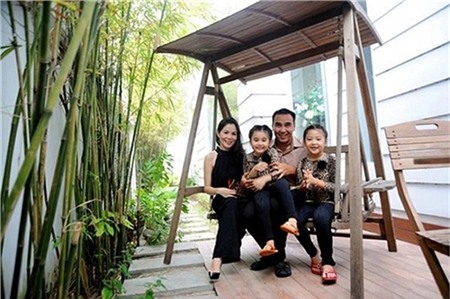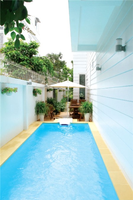 Phía ngoài ngôi nhà có bể bơi. Đây là nơi mà anh và các con cùng vui chơi vào thời gian rảnh.