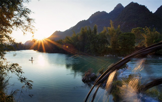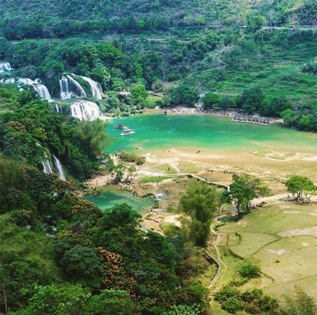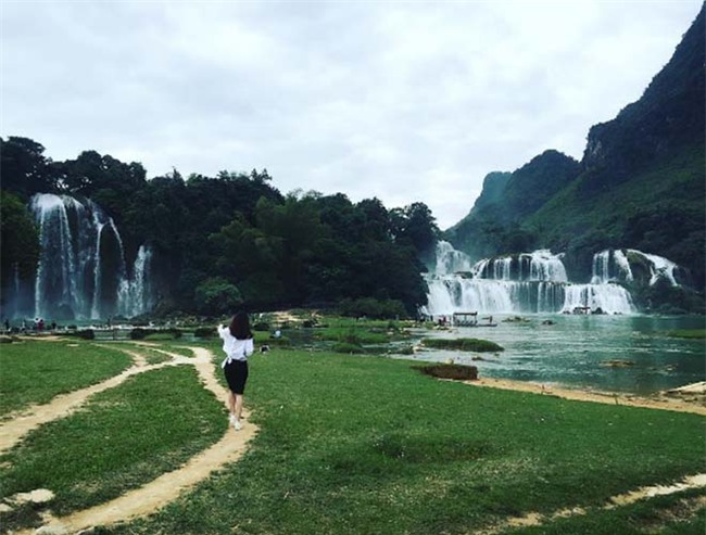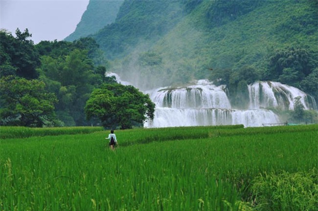 Thác Bản Giốc quanh co, uốn lượn, đẹp như bức tranh thiên nhiên với đồi núi, cánh đồng vô cùng nên thơ, trữ tình. Đã đến với Bản Giốc, chắc hẳn bạn sẽ không thể nào cưỡng nổi sự mê hoặc, say đắm trước nét hùng vĩ bao la của thiên nhiên, sự hiếu khách của người dân bản địa. Ảnh:thanh_lady