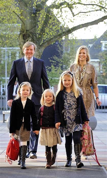 Willem-Alexander và vợ Maxima cùng tay trong tay vào ngày đến lớp