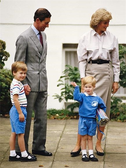Hoàng tử William vui vẻ nắm tay cha mình là Thái tử Charles trườngWetherby trong ngày đầu tiên tới trường của em trai, Hoàng tử Harry