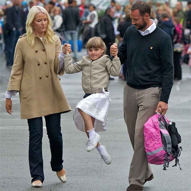 Mette-Marit và hoàng tử Haakon trong ngày đầu tiên tới trường