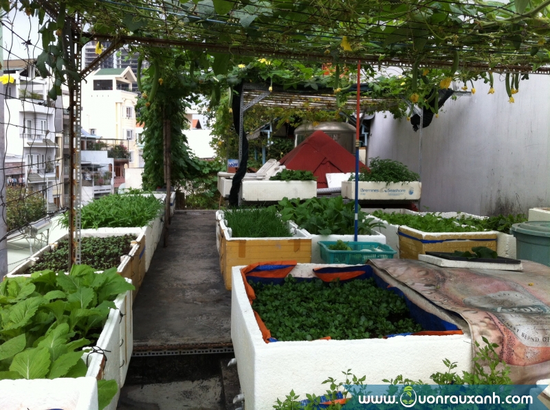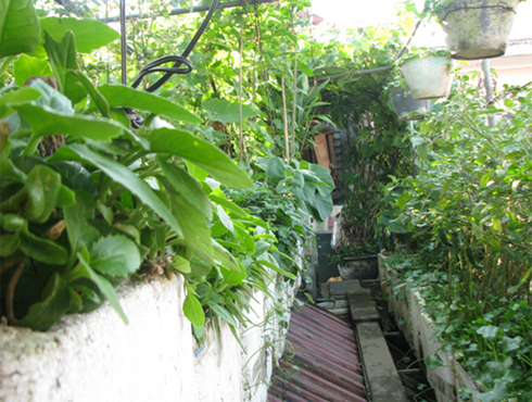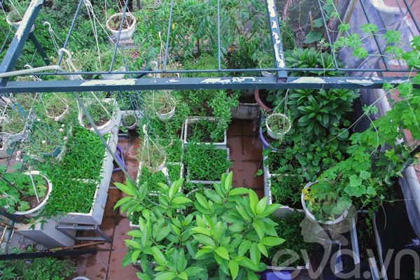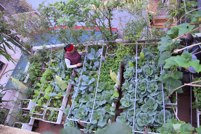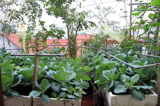 Từng centimet khoảng trống trên sân thượng được tận dụng để trồng rau sạch