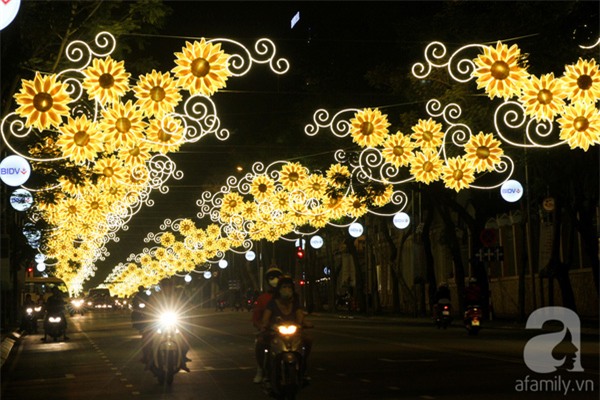 Chào đón năm mới, mỗi con đường ở Sài Gòn được trang trí theo một phong cách riêng nhưng chủ yếu tập trung vào các biểu tượng hoa. Được trang trí sớm nhất là con đường Lê Duẩn gần 3km từ Thảo Cầm Viên đi đến Dinh Độc lập trở nên vàng rực bởi những mô hình đèn bông hoa hướng dương treo hai bên đường.