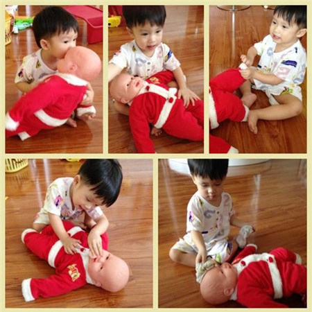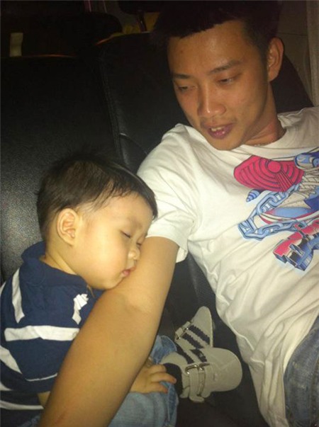 đang học cách chăm em Cola (Con gái Ốc Thanh Vân vừa tròn đầy tháng).