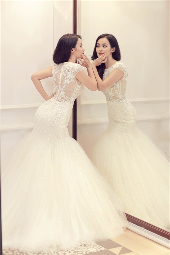 cưới của mình được chụp theo phong cách trẻ trung, lãng mạn. Trong