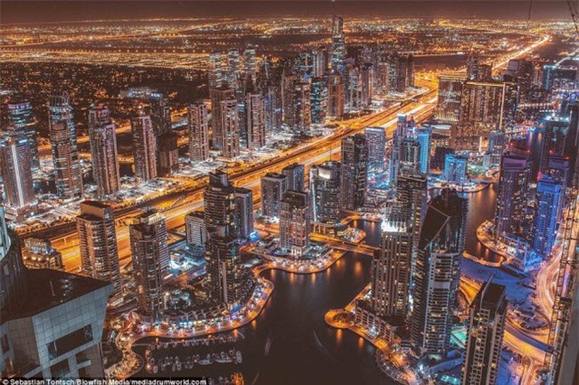 Nhiếp ảnh gia người Đức chụp toàn cảnh thành phố Dubai tràn ngập ánh sáng về đêm.