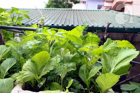 Khu vực ban công trên tầng 3 của hai bác được tận dụng từng tí một để có thêm diện tích trồng các loại rau.