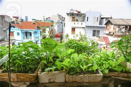Rau sạch vốn là vấn đề khiến nhiều người thành phố đau đầu bởi cuộc sống chốn đô thị vốn quá bận rộn, thêm vào đó đất chật, người đông cũng khiến người ta khó có thể tạo ra mảnh vườn của riêng mình. Thế nhưng với vợ chồng bác Toàn, bác Xuân (Đào Tấn, Hà Nội) đây hoàn toàn không phải vấn đề bởi từ lâu tất cả khoảng trống trên ban công, sân thượng của ngôi nhà bốn tầng đều được hai bác tận dụng để trồng rau xanh.