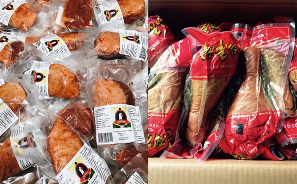 Trái ngược với thị trường gà đặc sản, dịp cận Tết này, các loại thịt gà tây xông khói Hàn Quốc hay cánh, đùi, lườn ngỗng Nga xông khói lại bất ngờ lên cơn sốt. Trên các trang mạng xã hội, hai mặt hàng này được rao bán tràn ngập với số lượng lớn, với mức giá khá rẻ.