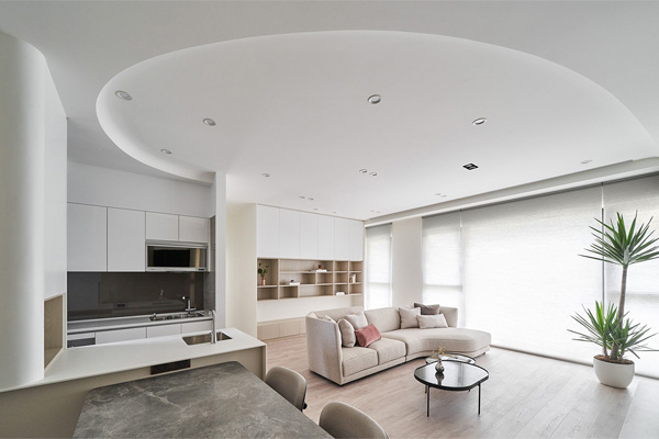 Góc trò chuyện được tiết kiệm diện tích tối đa khi bố trí sofa màu nâu be. Bàn trà nhỏ bằng gỗ cách điệu tạo điểm nhấn hút mắt cho không gian tiếp khách. Gối tựa êm ái, ấm cúng với bàn trà nhỏ cách điệu bằng gỗ. Thêm vào đó, không gian trò chuyện thanh lịch hơn nhờ đèn chiếu sáng thả trần.